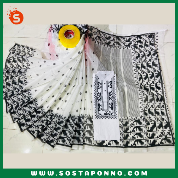 বিশেষ উল্লেখ: এই শাড়ি ও পাঞ্জাবির সেটটি বাঙালি ঐতিহ্যের এক অসাধারণ মেলবন্ধন। আপনার জীবনের বিশেষ দিনগুলোতে এটি হয়ে উঠতে পারে আপনার স্টাইলের এক অনন্য সংযোজন।
