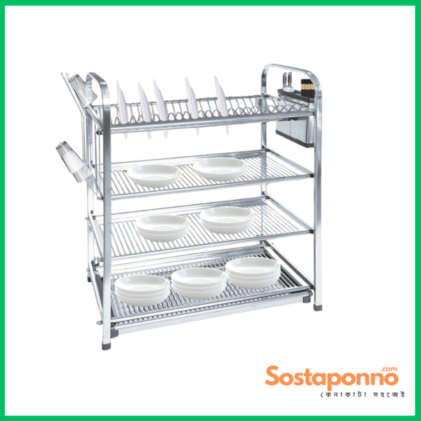 Disnie 4 Layer 24 Plates Stainless Steel Kitchen Storage Rack – 26 Inch