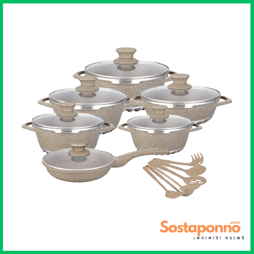 – একসাথে ১৮ পিসের পূর্ণাঙ্গ কুকওয়্যার সেট